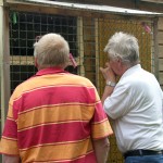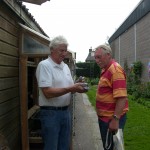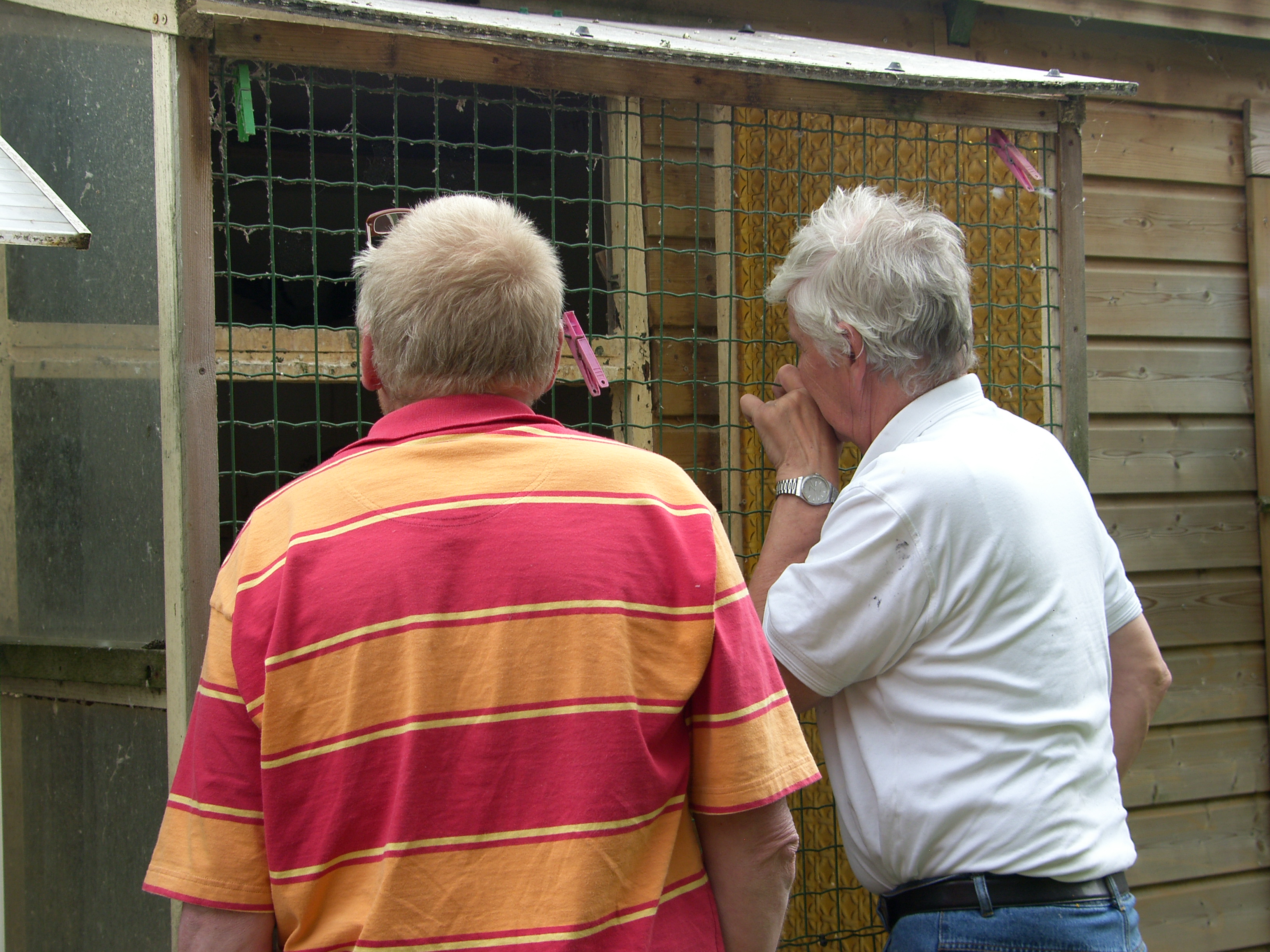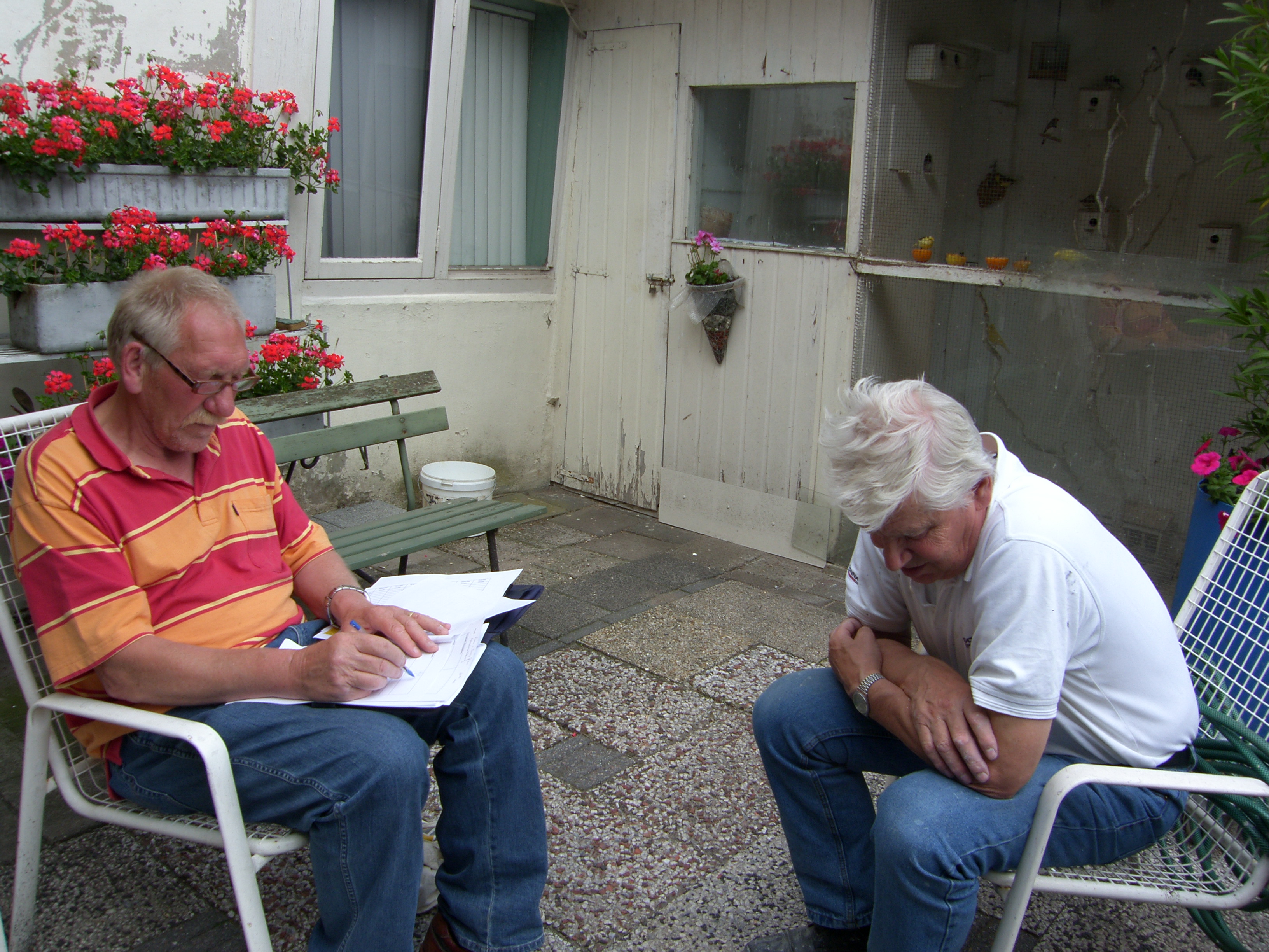 De combo van de postduivencoach ging wederom het oosten in richting Berkel en Roderijs. In de schaduw van de silo en lopende banden van de mengvoederfirma Treurniet liggen de hokken van Cor Troost die over drie maandjes alweer 71 wordt , maar als je naar Ma Troost kijkt heeft ook Cor nog vele jaren voor de boeg. De bloemenweelde rond de hokken van Cor en de kanaries en zebravinken worden totaal verzorgd door deze 93 jarige jongedame die nog met bloembakken en tegels loopt te sjouwen als een echte hovenier. Oma Troost stond ook nu weer takken fijn te knippen in de kliko en glunderde als je haar een compliment maakte over haar