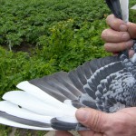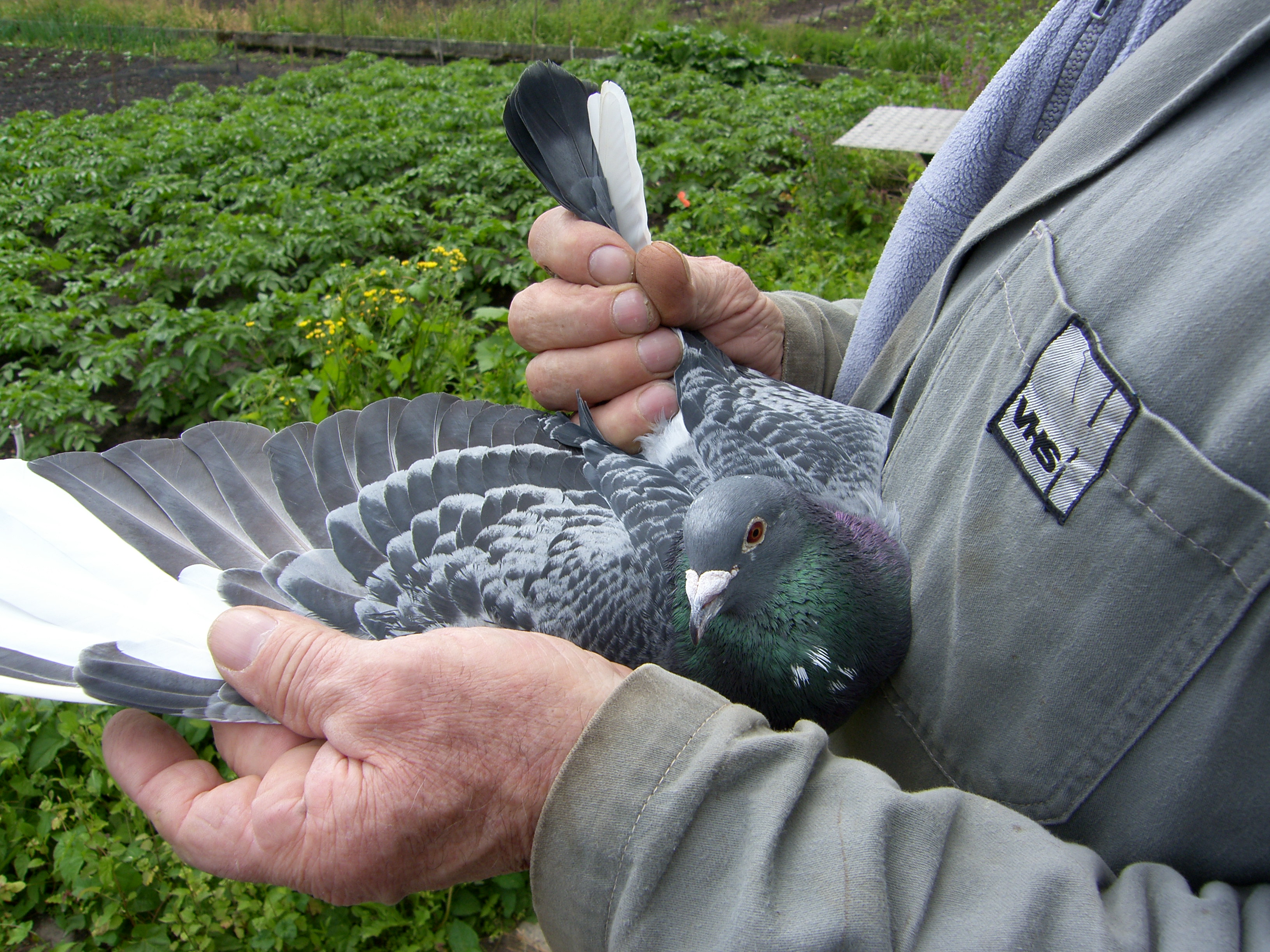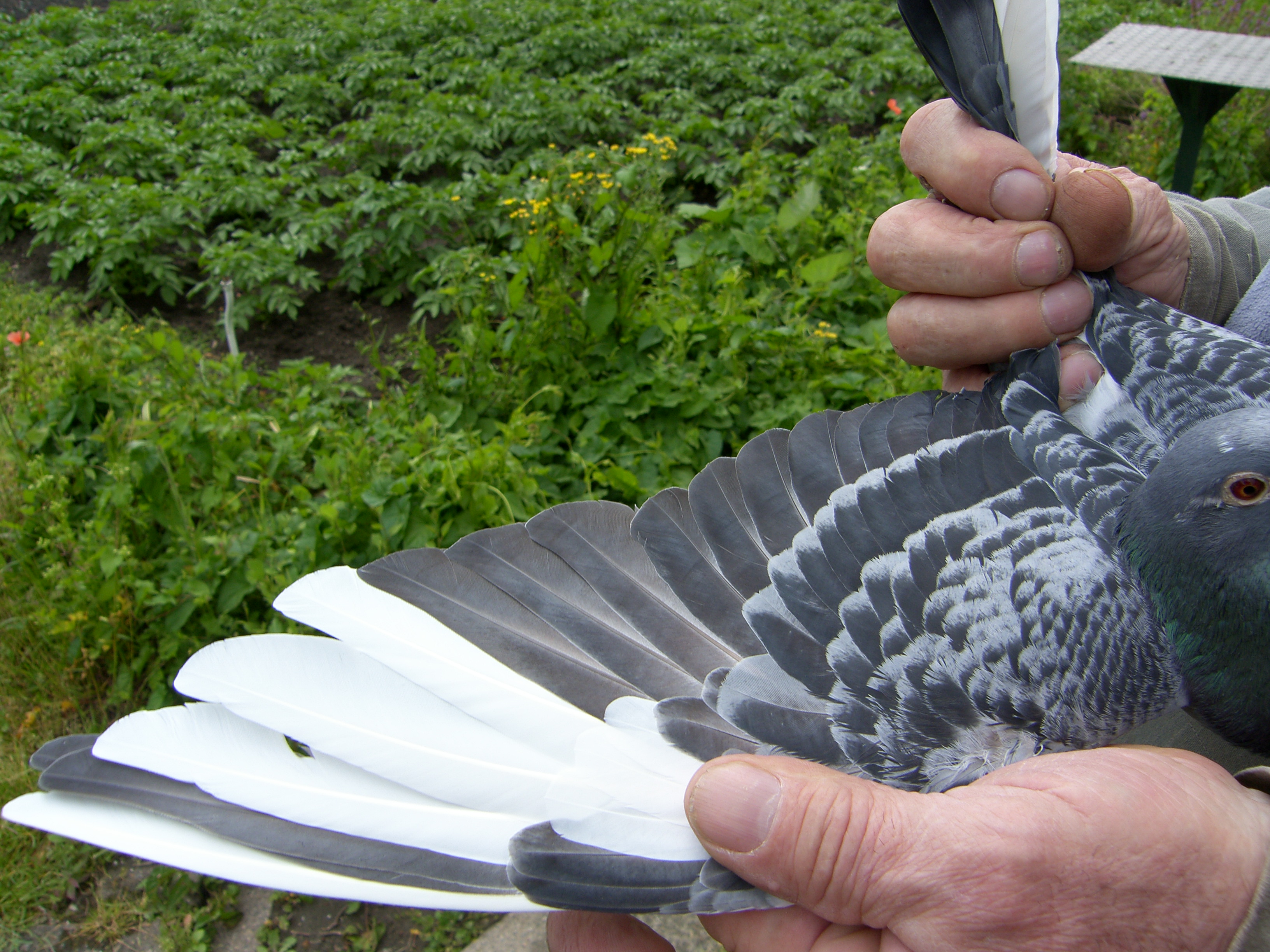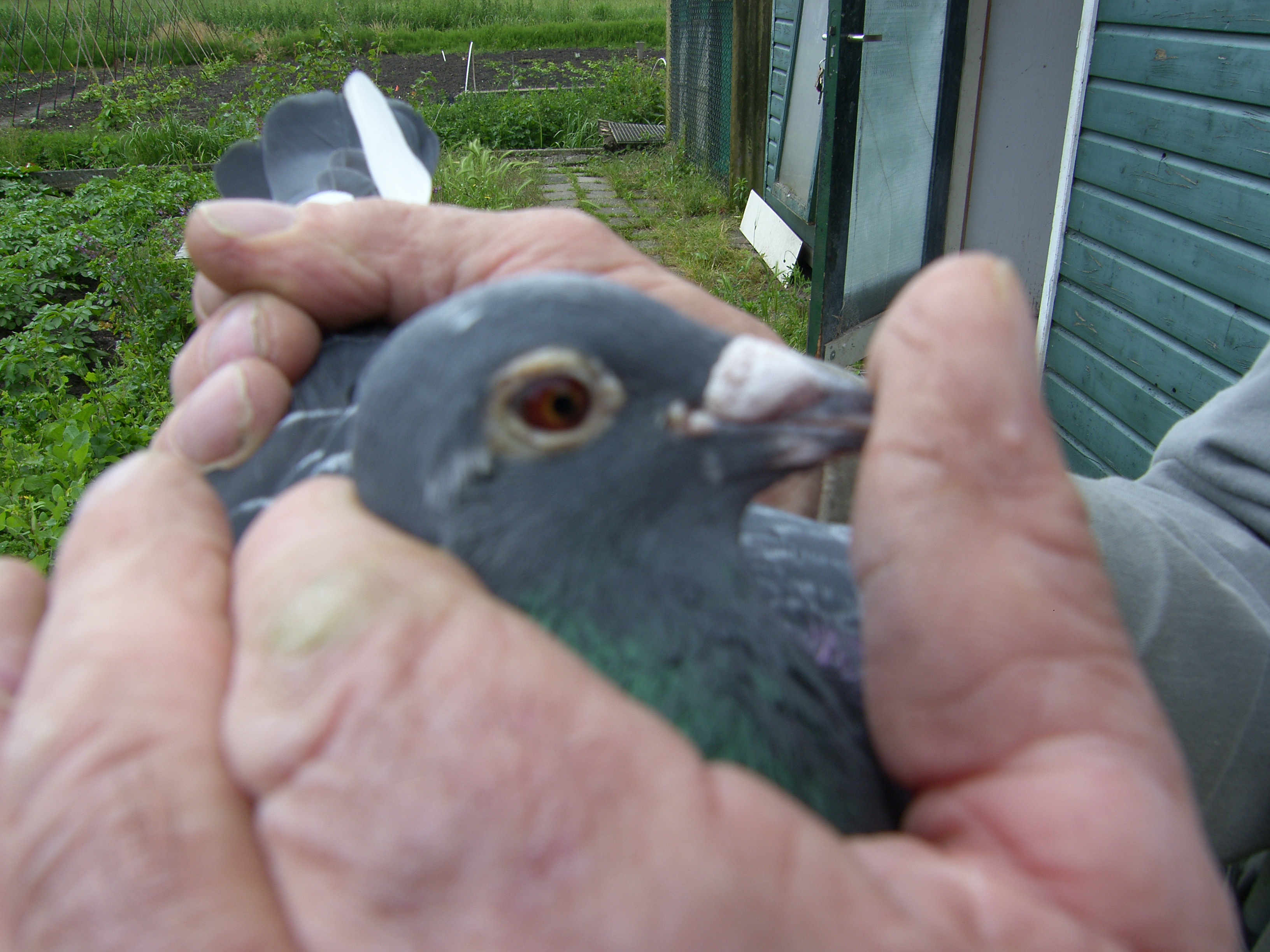 Ik ga met deze 72 jarige liefhebber die al 60 jaar duiven heeft de hokken in, krijg achter elkaar duiven in de hand gedrukt, stuk voor stuk krachtig gespierde duiven. Pracht dieren met hele brede pennen en goede verluchting tussen de laatste pennen. Vleugels waar klappen mee gemaakt kunnen worden. Ogen in hun duivenkop met pupillen zo klein dat je ze amper ziet maar reageren op alles. Borstbenen die niet te lang zijn en ook niet tekort zijn maar gewoon perfect. Dit hok was voor mij een openbaring, ik denk dat hier de beste fondduiven zitten die er in Nederland te vinden zijn. Raspaarden voor het grote werk. Ik gaf hierover al een voorzet op facebook en er kwam direct een reactie als , en Arjan Beens dan ? Dit is absoluut niet te vergelijken , ik ken de duiven van Arjan niet maar weet wel wat ik zoek en bedoel met een goede fondduif , vitesse of midfondduif. En hier vond ik ze de echte fondkrakers.
