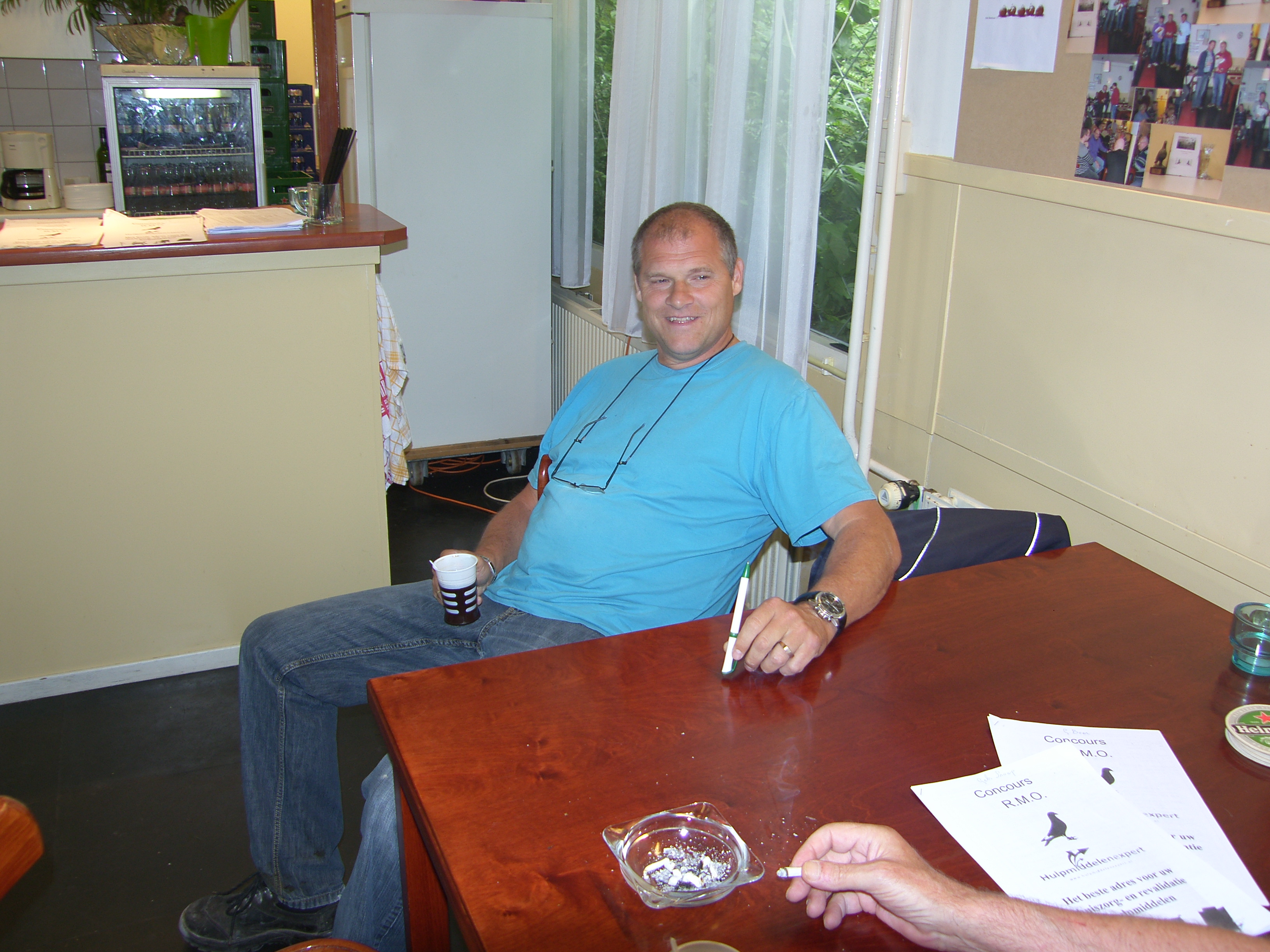 gaan, hij wil ze zo dicht mogelijk bij de natuur houden. Peter (vanwege zijn nooit ontbrekende sigaar ook door insiders Momfert genoemd) is helemaal de rust zelve , schuifelt altijd wat rond met voer voor de dieren, staat zonodig de duiven in de club in te korven , gewoon een liefhebber en mens zoals feitelijk iedereen zou moeten wezen.