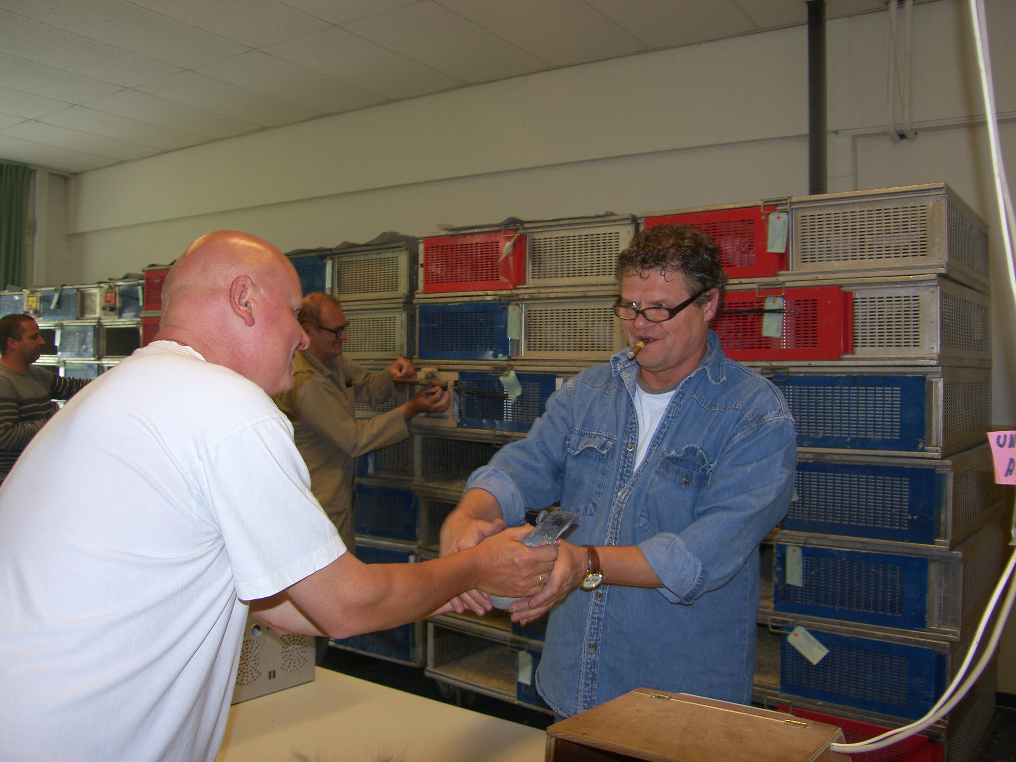 Ed en Peter zijn harde werkers en moeten nog elke dag de deur uit om brood op de plank te krijgen. Het zijn beide in de duivensport graag geziene gasten die niet graag op de voorgrond staan maar gewoon gezellig zijn en alleen iets inhoudelijk in een gesprek invoeren. Ed is niet voor niets voorzitter van de sterke Rotterdamse postduivenvereniging pv De Blauwe Doffer. Diverse keren was ik al op het landje bij deze mannen ,alle keren was ik diep onder de indruk van de rust die er heerste en die ook beide mannen uitstralen en op hun duiven en alle dieren overbrengen. Dierenliefhebbers zijn het pursang, rondom je liggen katten te spinnen, de honden worden na een hartelijk welkom al snel rustig en gaan op een afstand in de zon je in de gaten liggen houden. Rust en nog eens rust ik kan er het niet genoeg benadrukken.