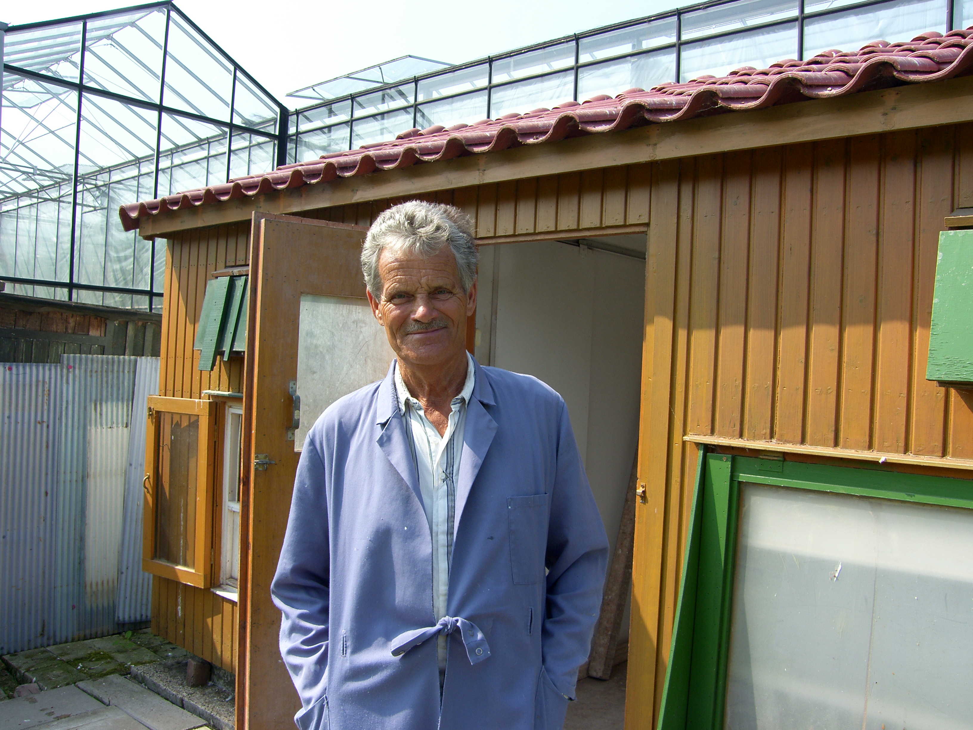 naar zijn woonhuis kwam ik al voorbij het hok wat achter een kassencomplex gelegen is. Ger gebeld ,,joh ik ben al bij je hok.,, Oké ik kom eraan. En inderdaad even later stond Ger naast me. Er was een nieuw hekwerk geplaatst met een gecodeerd veiligheidslot erop maar Ger is van alle markten thuis dus waren we snel binnen.