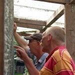 We gaan maar gewoon achterom zoals dat in de meeste dorpen gebruikelijk is, een brul, en de vrouw van Dirk verwijs ons naar achteren waar hij druk bezig is. Het gras om de hokken keurig gemaaid en schoon netjes aangeharkt zand op de paden duidt erop dat hij alles nog even snel spik en span heeft gemaakt. En ik kan mijn ogen niet geloven, het is hier echt één en al duif. De hoofdmoot zijn rooie duiven van het soort Theelen maar ook de lijn met Blauwe duiven zit hier , duiven met die ouderwetse bloemkool doppen. Geweldig gewoon, ik vind ze geweldig.