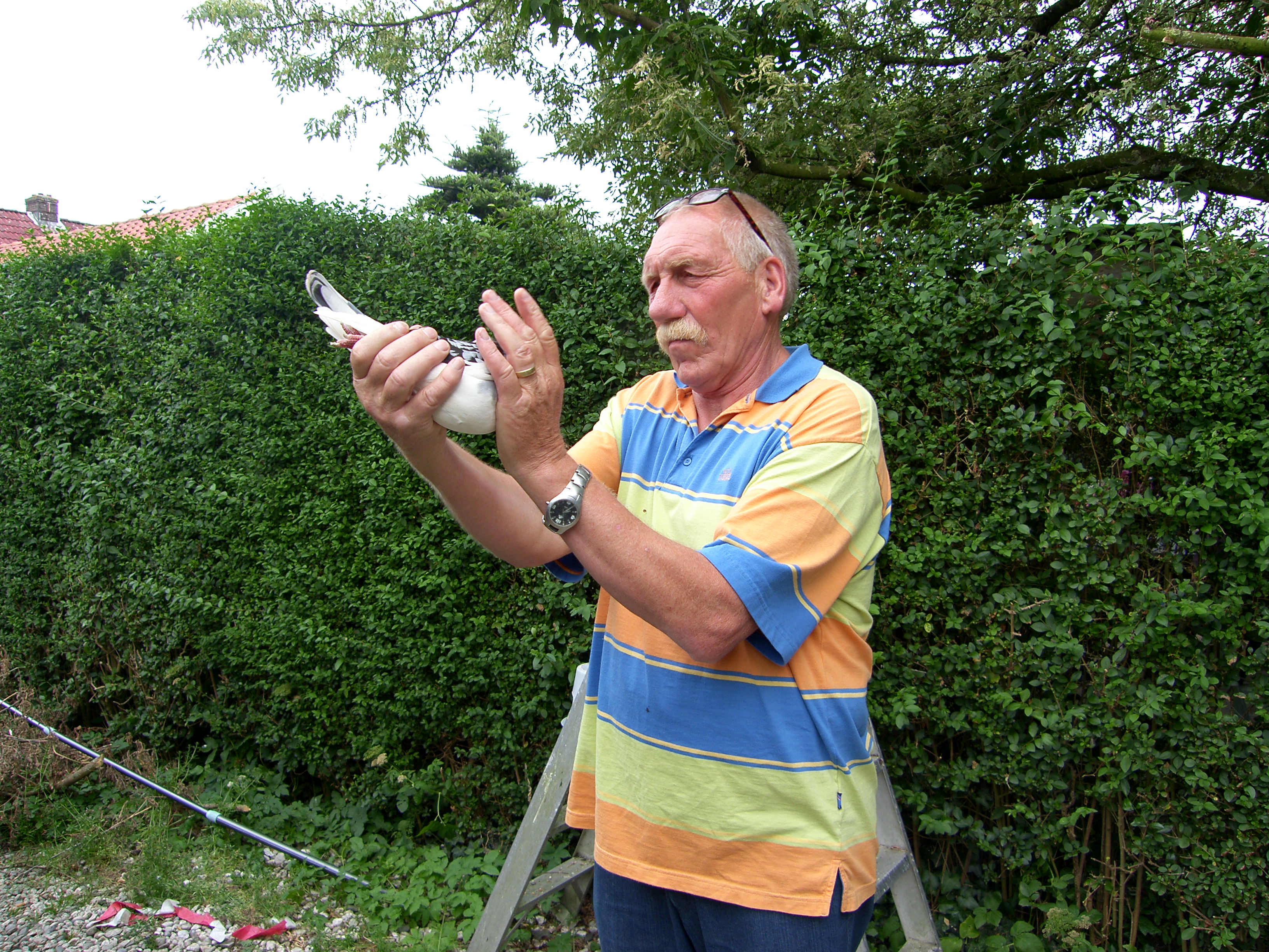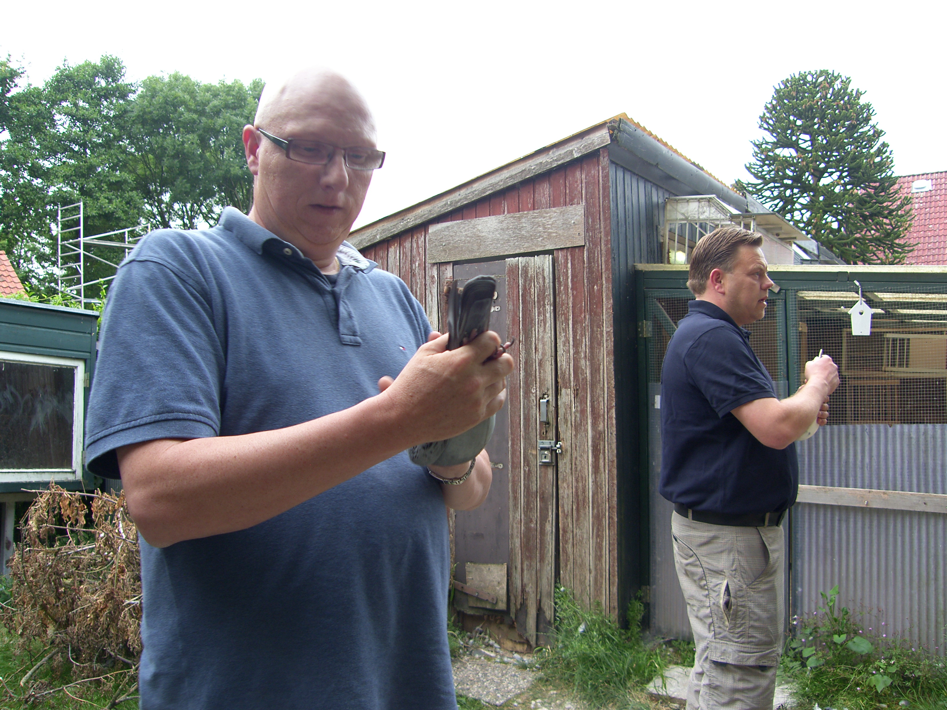 Enige tijd terug was ik al bij deze combinatie op bezoek vanwege hun overwinningen op St Vincent en Agen. Maar met de overwinning op Limoges erbij was het driemaal scheeprecht en is de koek van 2013 opgedeeld.Limoges los op Vrijdag 6-9-2013 om 14.00 uur met een zwakke ZW wind, er zouden weleens duiven door kunnen komen in de late avonduren maar in de nacht werden zeker duiven verwacht.Maar alles pakte anders uit ,wel een vroege melding vanuit de overvlucht in Apeldoorn maar verder was het gewoon wachten. Plots een melding op de site van Fondclub Groot Rotterdam ,,Mudde & Herpst om 9.50.56 uur, de duif bleef staan en het werd spannend, zou ze blijven staan? En inderdaad bleef ze staan. Eerste prijs in de Fondclub Groot Rotterdam (met nog wat centjes aan haar staart) en ook de eerste prijs in Zuid-Holland.