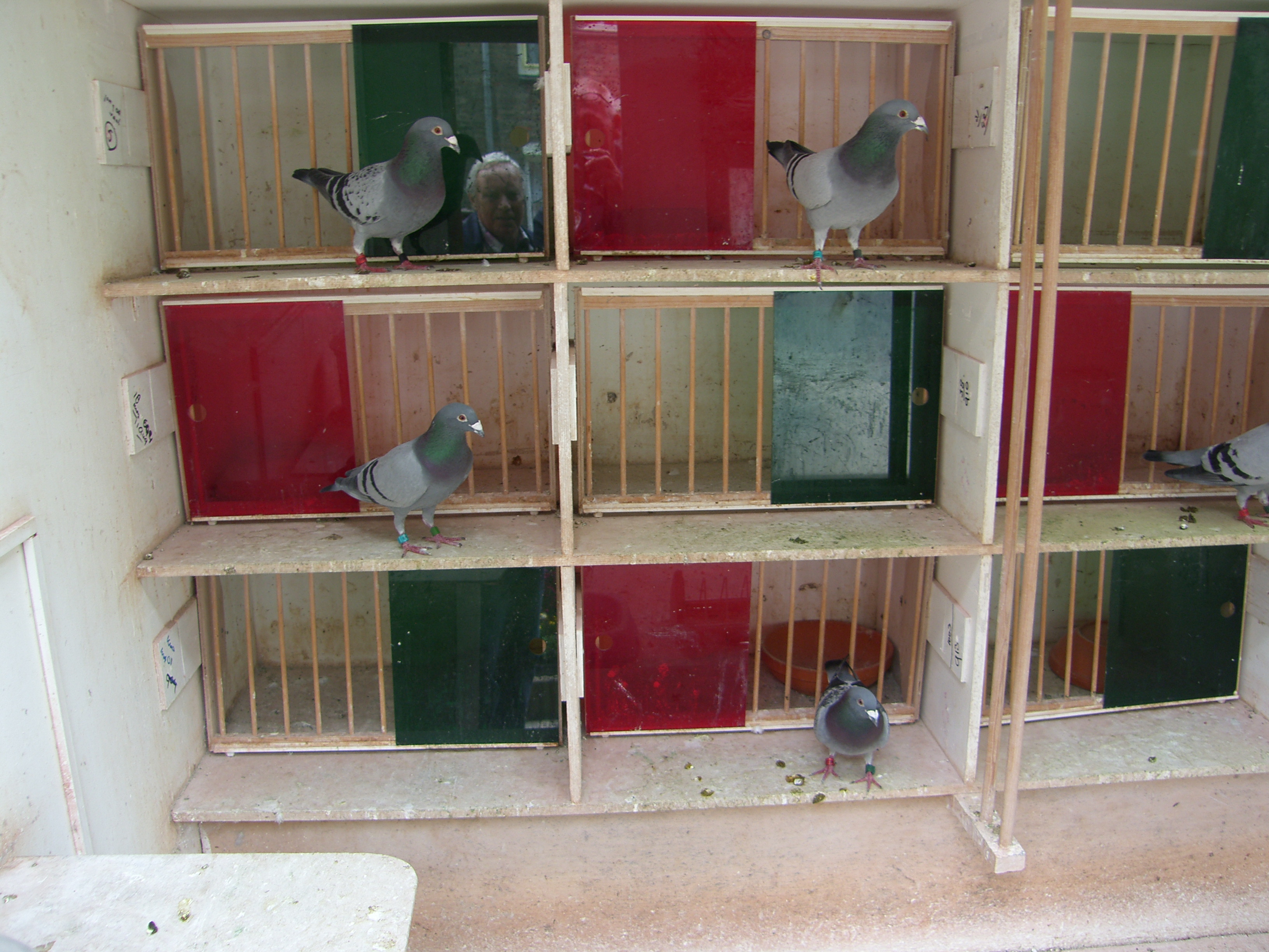 De hokken worden tweemaal daags geschrapt, geregeld met een mengsel van Dettol en spiritus gespoten. Arie is in mijn ogen een perfectionist als het om de verzorging van zijn duiven, hokken en kantoor gaat. Alles is netjes op orde en onderhouden.