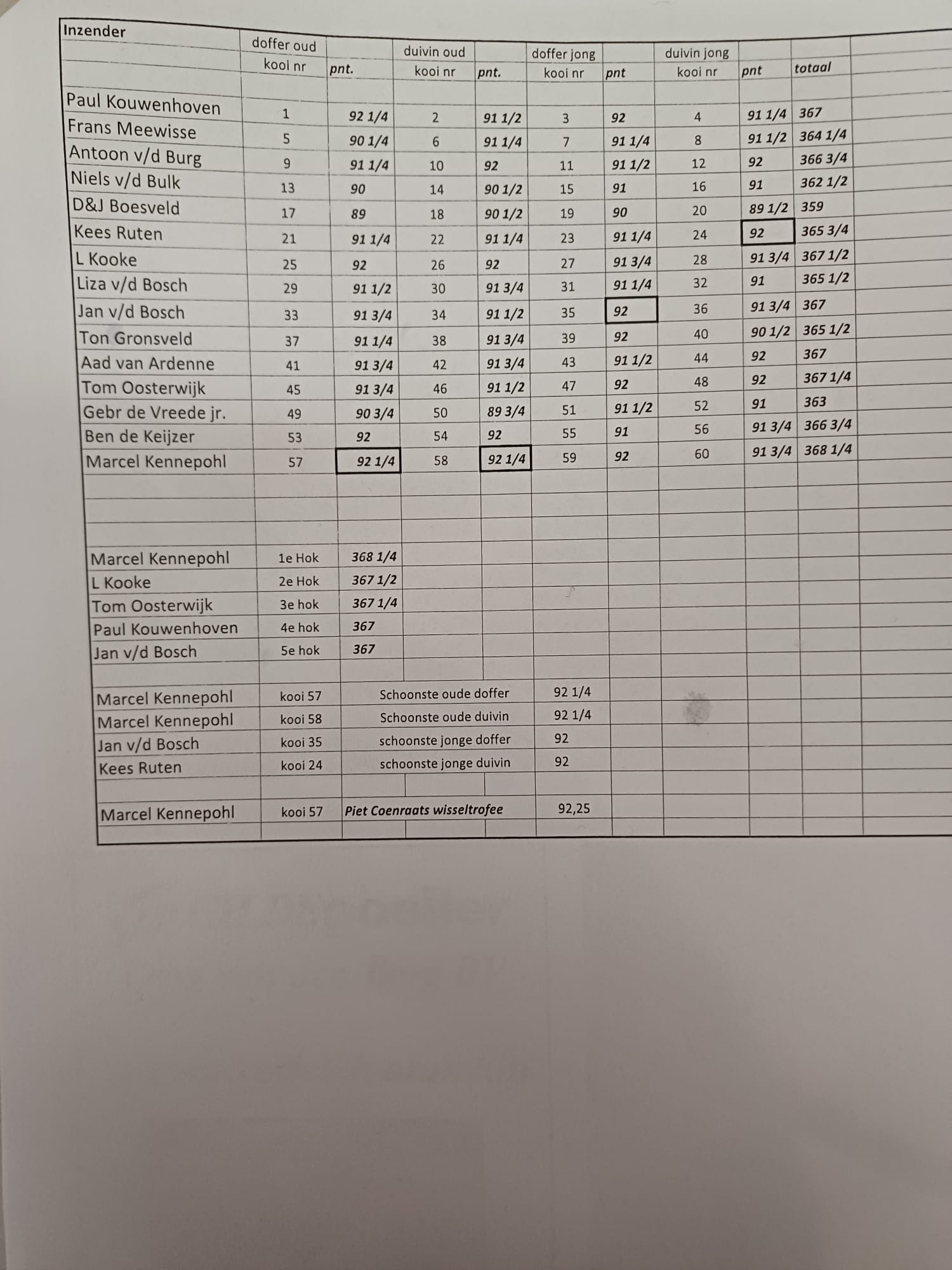 Deze week nog even in mijn oude vereniging de duiven op een rijtje gezet en dat schijn ik goed te hebben gedaan want iedereen was tevreden, en dat is de hoofdzaak van het organiseren van gezellige avonden, toch.